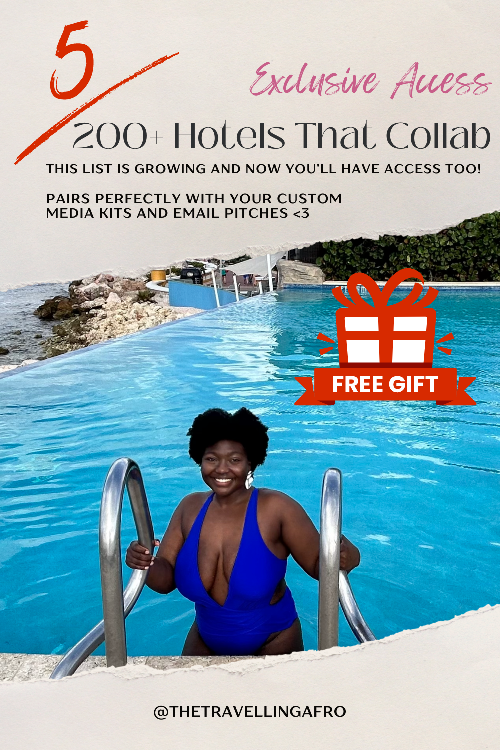 Are you ready to dive into the world of hotel collaborations? Let me make it easy for you! With our list of 200+ handpicked hotels, you'll have everything you need to kickstart your journey and turn your dreams into reality. Let's make it happen together :)
